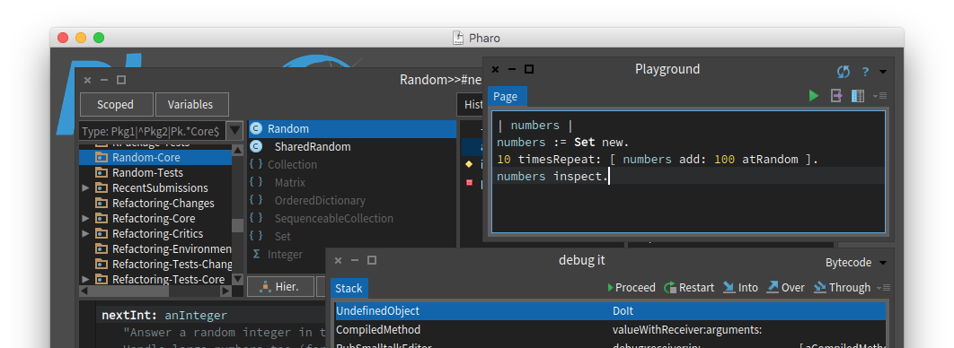 - Amazing debugging experience: The Pharo environment includes a debugger unlike anything you've seen before. It allows you to step through code, restart the execution of methods, create methods on the fly, and much more!